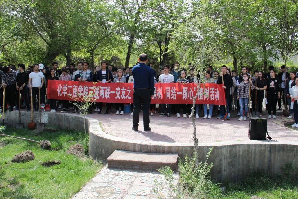 春之气息扑面来,花香四溢惹人怜。为促进师生间友好交流,同时美化校园环境。2018年4月25日下午3:30在学院门前的青草地上,化学工程学院三进两联一交友之“共植一棵树,同结一颗心”植树活动拉开帷幕。化学工程学院三进两联一交友师生及学生会主席团成员共同参与植树活动。