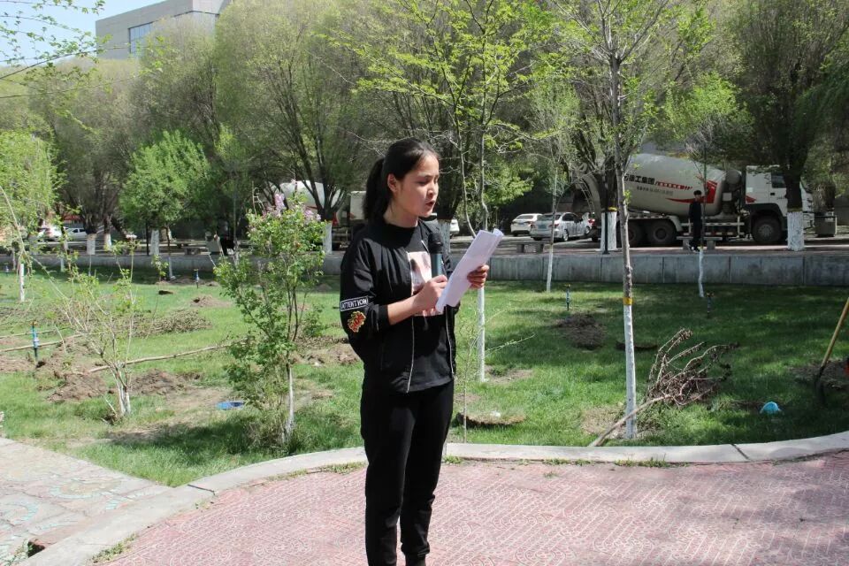 接着,由学生代表应化161班玛丽亚穆姑丽·托胡提同学进行讲话。她很高兴能来到化工这个大家庭,在这个家庭中,有老师的关心,同学的帮助,让她感受到了温暖;希望老师和同学共同播种绿色,种下这棵民族团结之树,让我们的校园充满绿意。