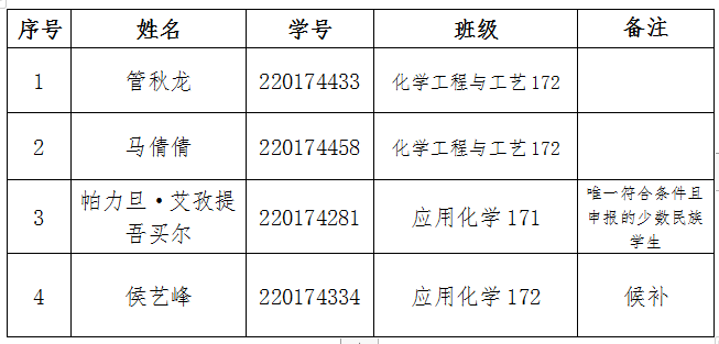 公示期9月10至9月13日。如有异议,请于公示期内向化工学院办公室反映,联系电话:15999196382。